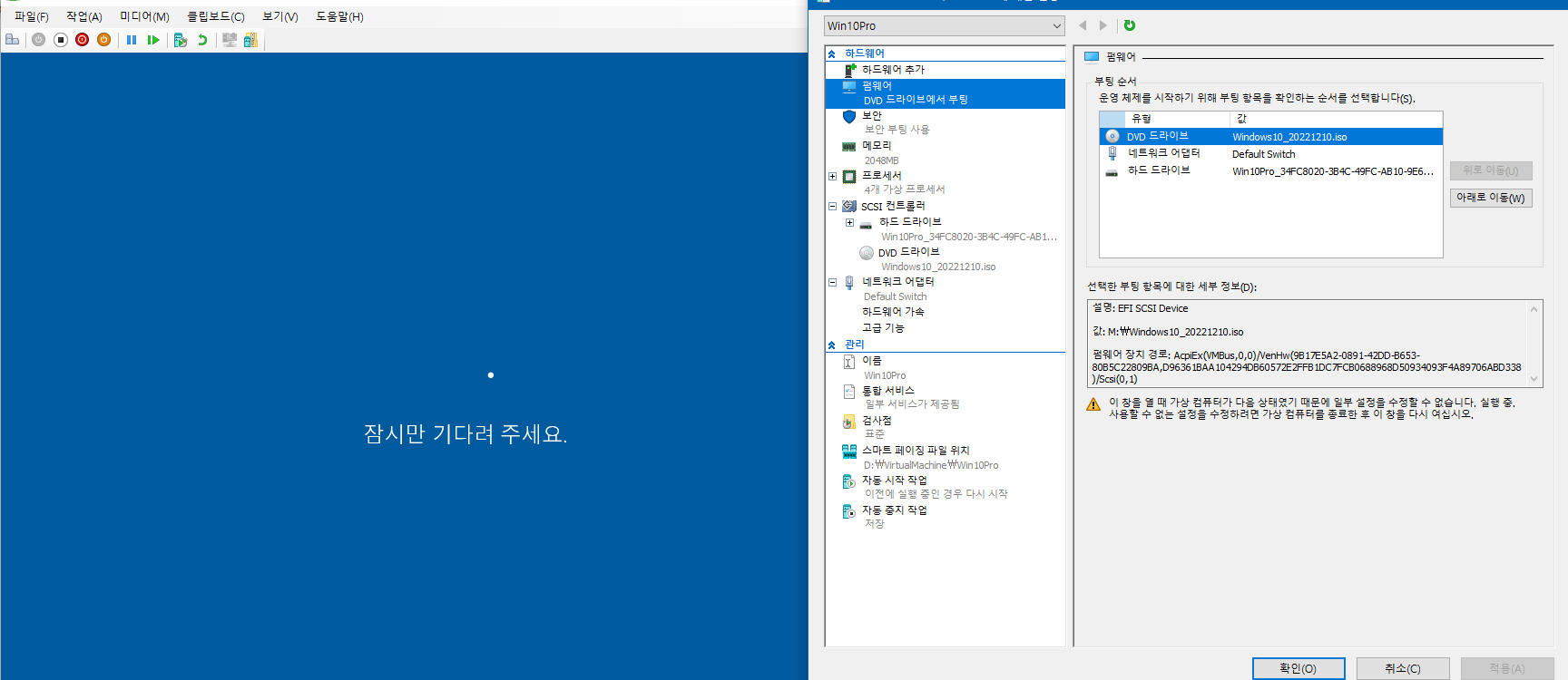 가상 머신 설정을 더 만져주니 돌아가는 것 같다.