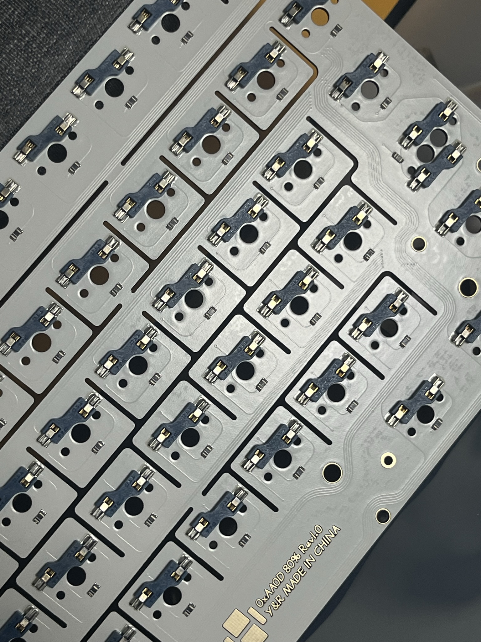 ![]() 기판과 도터보드, 스테빌라이저 심 | ![]() 키보드 기판 뒷면. TTC 사의 블루소켓이 적용되어 있다. 스위치 탈착 10000회의 수명을 지닌 튼튼한 소켓이다. |