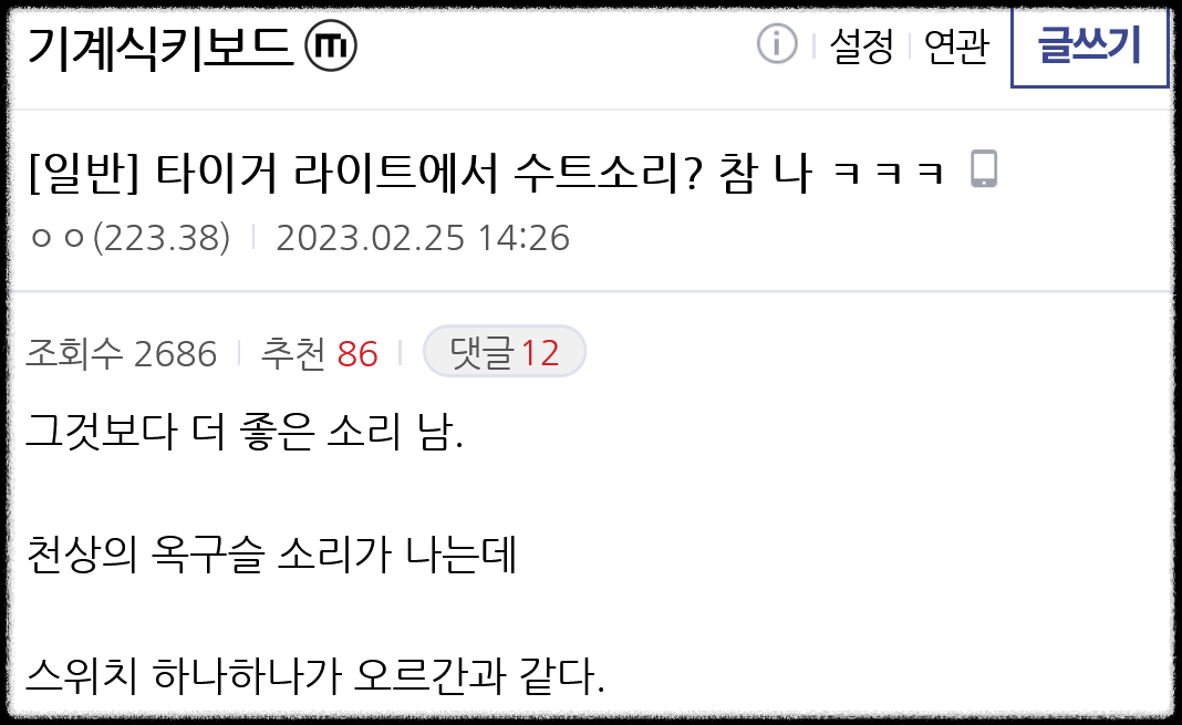 | 기계식 키보드 윤활은 필수일까? (2) | 2023.11.02 |