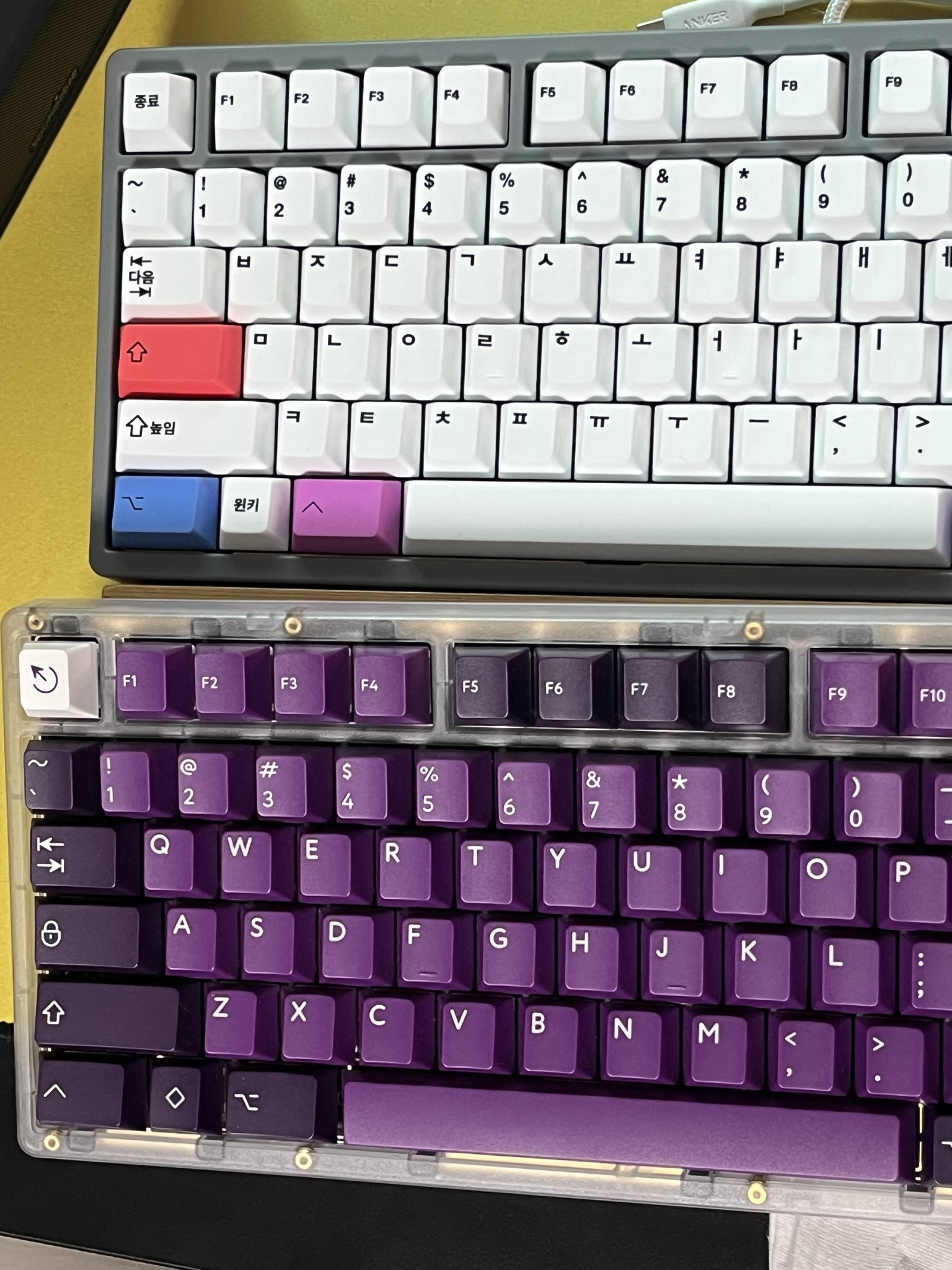 그럼 먼저 들였던 타이거라이트 - Purpurite 키캡 끼운거랑 한샷..