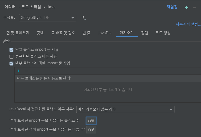 IntelliJ로 오면서 은근 맞춰줘야 하는 설정들이 많은 것 같다.