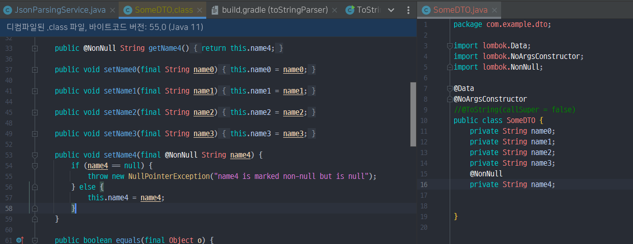 @ToString - 클래스 내의 변수를 모두 String으로 만들어준다.