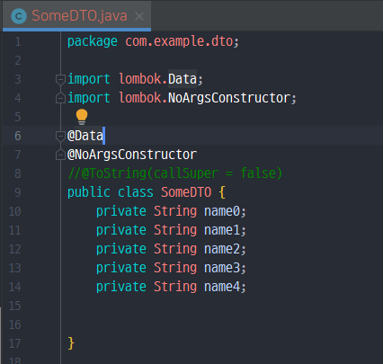 이 어노테이션들은 @Data로 대체 가능하다. 위의 이미지를 다시 확인해보면...