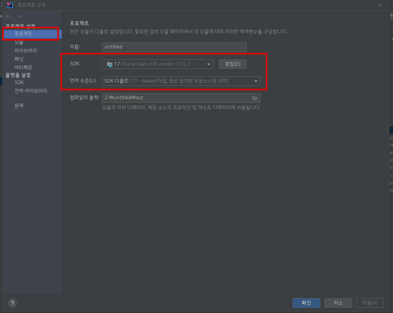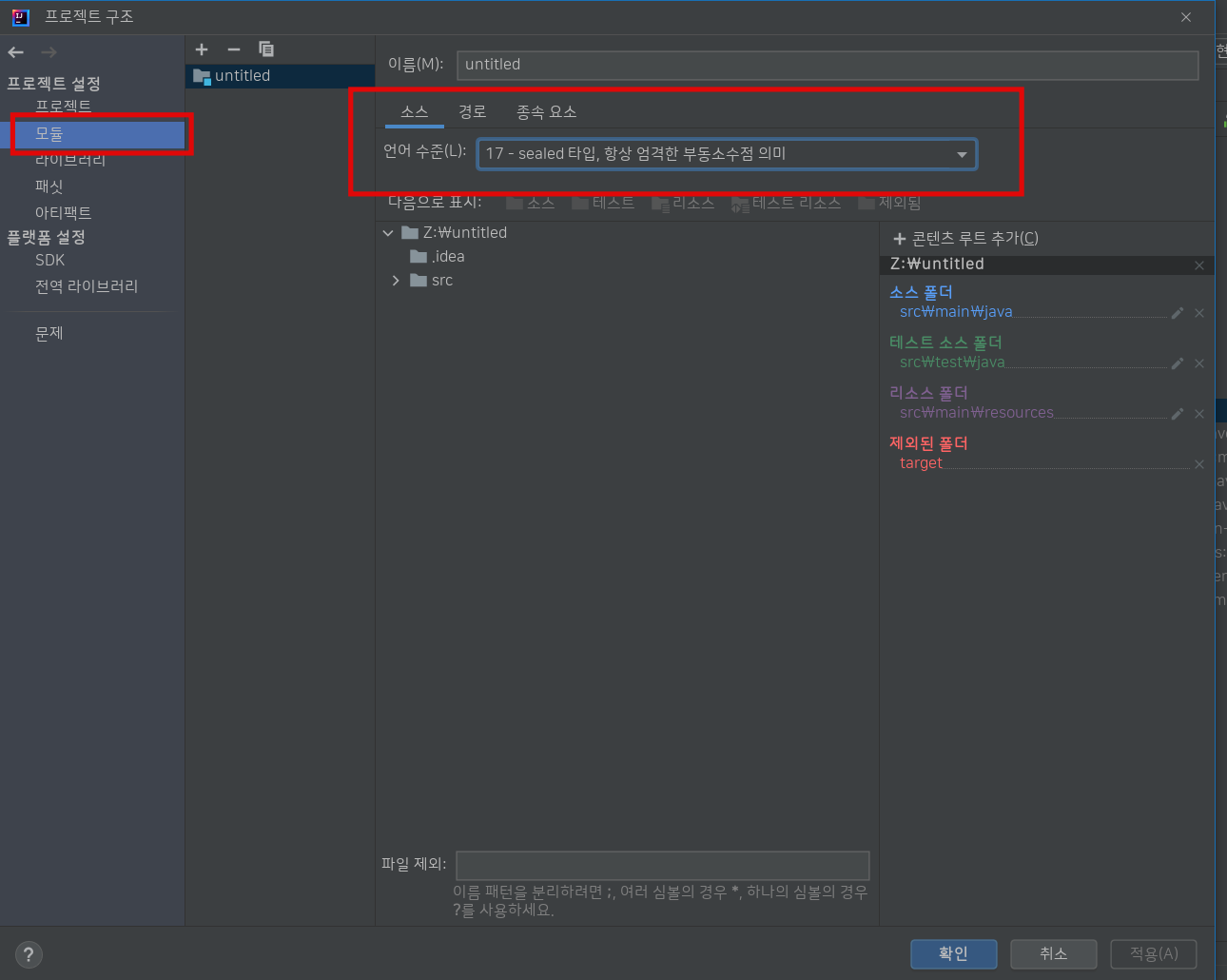 다음 두가지 설정을 현재 사용하는 프로젝트 언어 레벨로 조정해주자.