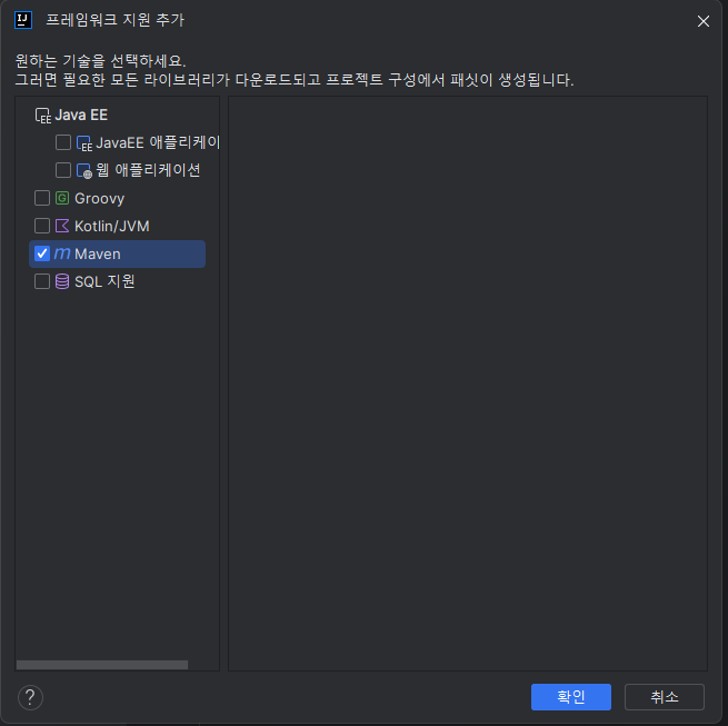 Add Framework Support 또는 한글 플러그인 사용시 프레임워크 지원 추가 를 검색한다.