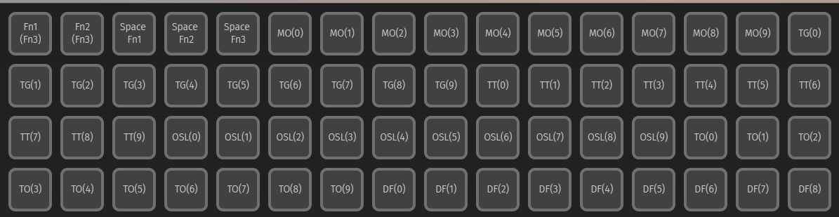 위에서 보이는 KC_SPC는 스페이스바 키를 의미하는데, LT(2,KC_SPC) 라고 하면 꾹 누르면 2번 레이어 활성, 눌렀다 떼면 스페이스가 입력된다.