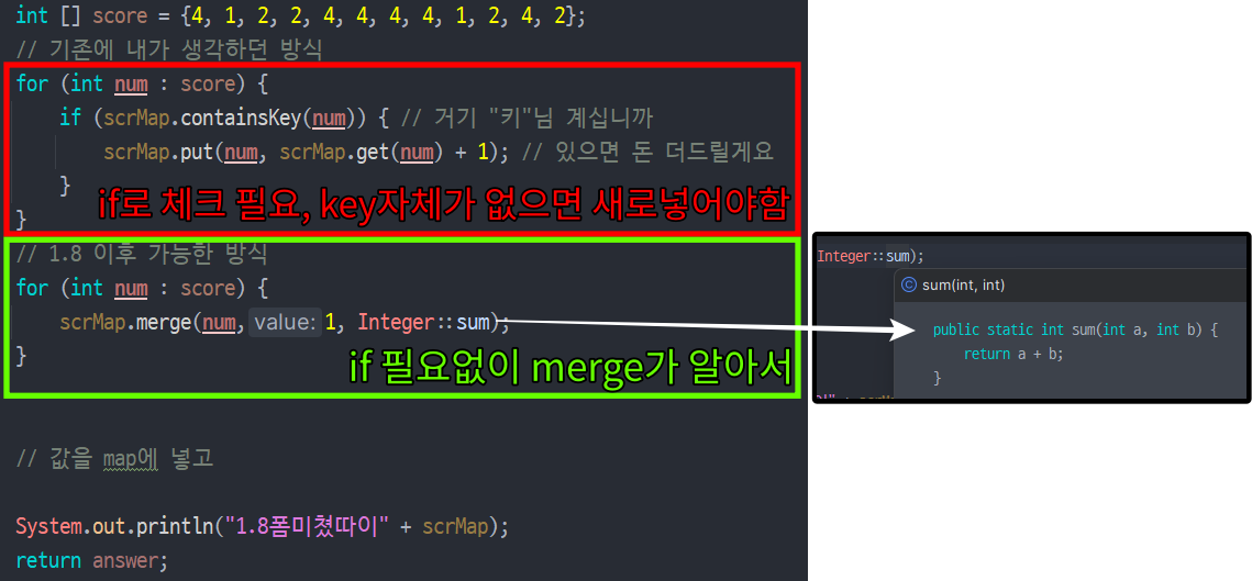 scrMap.merge(num,1, (v1,v2) -> v1+1); // 이렇게 쓰거나