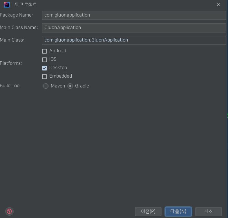 ![]() 3. 그냥 윈도우로만 제공할거니 데탑만 선택 Gradle은 요즘 체험해보는 중이라 요것도 선택. |